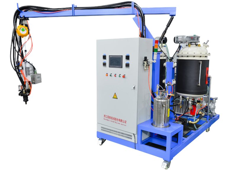 聚氨酯低壓發(fā)泡機功能和高壓發(fā)泡機相同,原料通過兩臺高精度齒輪計量泵送至混合槍頭,經(jīng)過攪拌葉高速攪拌而達到均勻的混合效果,注入模具中生產(chǎn)所需要的制品。澆注完畢后需用二氯甲烷進行清洗。