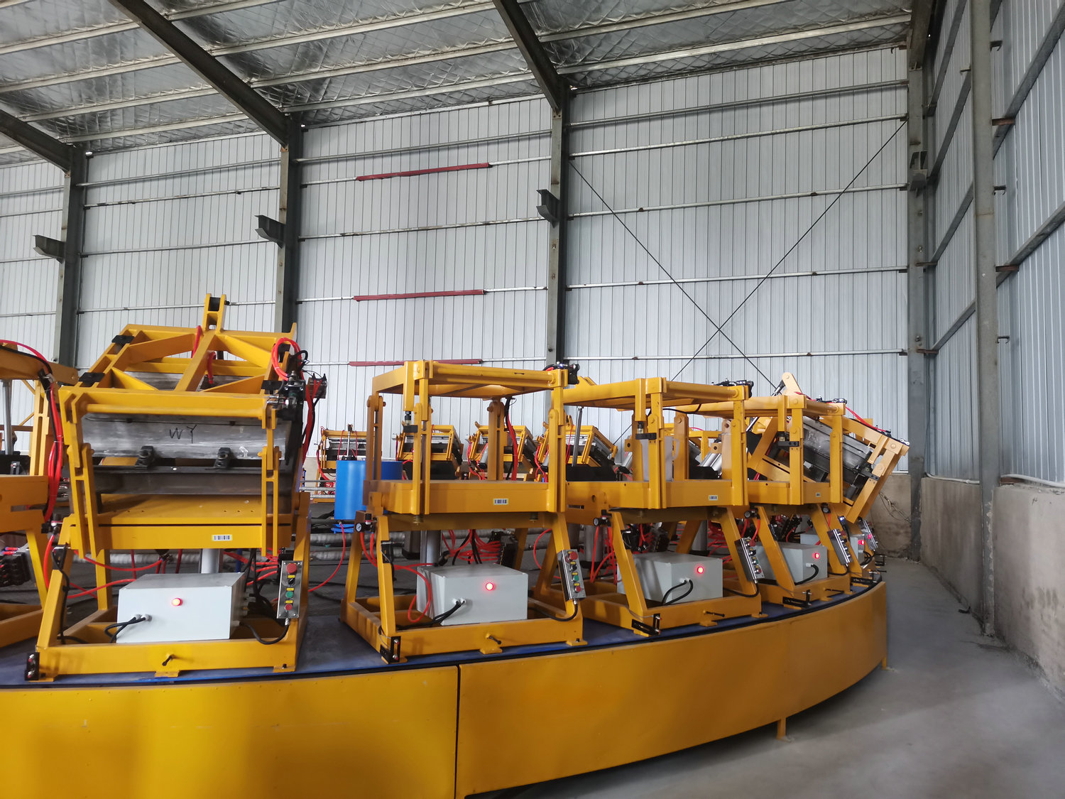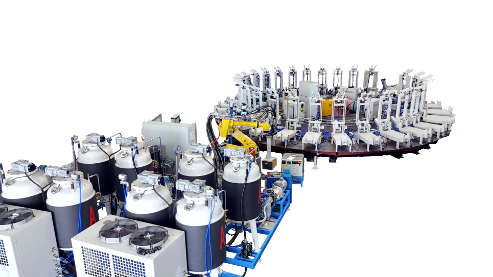 圓盤生產(chǎn)線由高壓發(fā)泡機(jī)、機(jī)械手、模架、模溫機(jī)、圓形轉(zhuǎn)盤、掃碼器、自動(dòng)控制系統(tǒng)等各裝置組成 適用于生產(chǎn)汽車座椅、頭枕、內(nèi)飾件、扶手、摩托車坐墊、家居家具用品等各類需要模塑的聚氨酯發(fā)泡產(chǎn)品 可實(shí)現(xiàn)高效、精確生產(chǎn),高產(chǎn)能低勞工,模塊化、高端配置實(shí)現(xiàn)穩(wěn)定運(yùn)行、維護(hù)簡便。